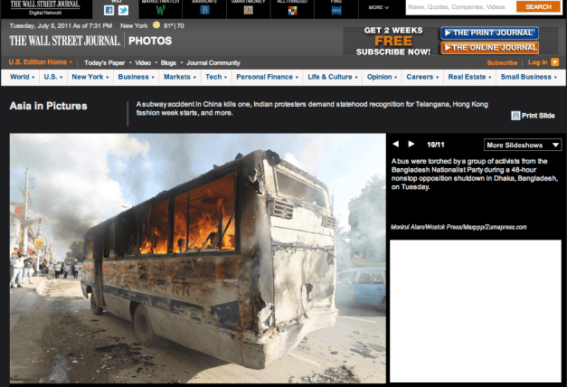 SHUTDOWN…..Tearsheet WSJ.com Posted by ZUMAPRESS.com on July 6, 2011 Posted in: ZUMALAND. Leave a comment The Wall Street Journal Online Asia in Pictures Slideshow ©Monirul Alam/Wostok Press/Maxppp/ZUMAPRESS.com View More Photos Online Share this: Click to share on Facebook (Opens in new window) Facebook Click to share on LinkedIn (Opens in new window) LinkedIn Click to share on X (Opens in new window) X Like Loading... Related Posts navigation ← A LOOK AT THE CELEBRATION….Tearsheet WSJ.com David Haye Broken Toe??….Tearsheet SI.com →