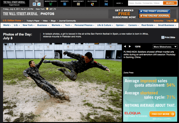 FLYING KICK….Tearsheet WSJ.com Posted by ZUMAPRESS.com on July 8, 2011 Posted in: ZUMALAND. Leave a comment The Wall Street Journal Online ChinaFotoPress/ZUMAPRESS.com Photos of the Day: July 8 View More Photos of the Day Share this: Share on Facebook (Opens in new window) Facebook Share on LinkedIn (Opens in new window) LinkedIn Share on X (Opens in new window) X Like Loading... Related Posts navigation ← CELEBS… Deadline ASAP. DRESSAGE….Tearsheets WSJ.com →