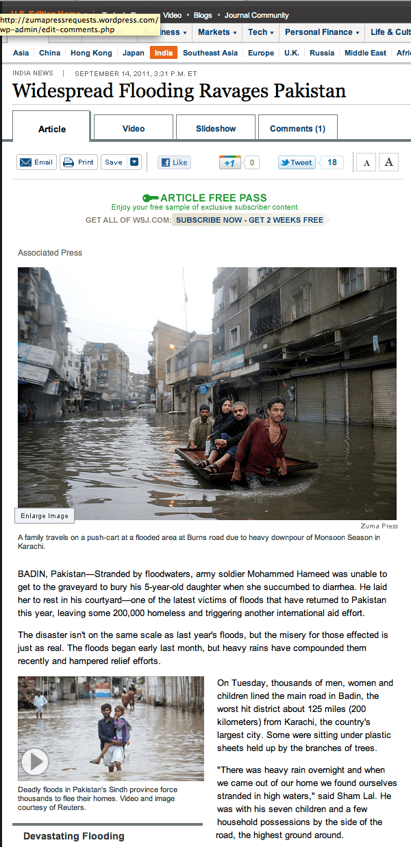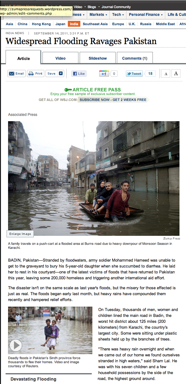 Flooding in Pakistan Posted by ZUMAPRESS.com on September 14, 2011 Posted in: ZUMALAND. Leave a comment Share this: Share on Facebook (Opens in new window) Facebook Share on LinkedIn (Opens in new window) LinkedIn Share on X (Opens in new window) X Like Loading... Related Posts navigation ← Pakistan Flooding Mark Buehrle. Deadline ASAP! →