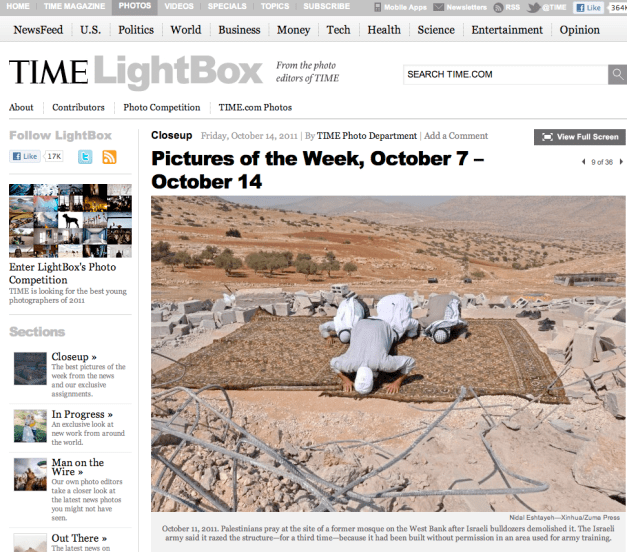 TEARSHEET… TIME LightBox. Posted by ZUMAPRESS.com on October 14, 2011 Posted in: ZUMALAND. Leave a comment Pictures of the Week, October 7-October 14 Nidal Eshtayeh/Xinhua/ZUMAPRESS.com Share this: Share on Facebook (Opens in new window) Facebook Share on LinkedIn (Opens in new window) LinkedIn Share on X (Opens in new window) X Like Loading... Related Posts navigation ← WAYGAL VALLEY, Afghanistan. URGENT! TEARSHEET… TIME LightBox. →