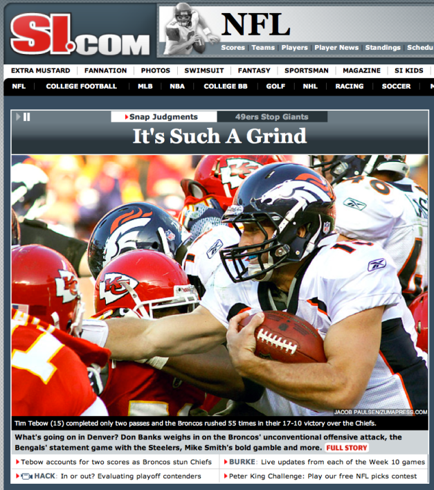 SI.com NFL Front Page Posted by ZUMAPRESS.com on November 13, 2011 Posted in: ZUMALAND. Leave a comment © Jacob Paulsen/ZUMAPRESS.com Share this: Share on Facebook (Opens in new window) Facebook Share on LinkedIn (Opens in new window) LinkedIn Share on X (Opens in new window) X Like Loading... Related Posts navigation ← ZUMA Sports Desk Nov 13, 2011 Smokin’ Joe Frazier Dies →
