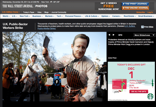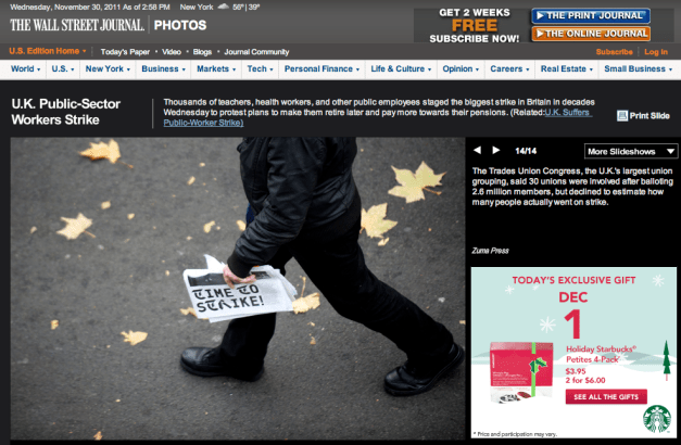 12/01/11 The Wall Street Journal Tearsheets! Posted by ZUMAPRESS.com on December 1, 2011 Posted in: ZUMALAND. Leave a comment © Mark Makela/ZUMAPRESS.com Share this: Share on Facebook (Opens in new window) Facebook Share on LinkedIn (Opens in new window) LinkedIn Share on X (Opens in new window) X Like Loading... Related Posts navigation ← Paul MacCready, founder of Aerovironment The Wall Street Journal Tearsheets… →