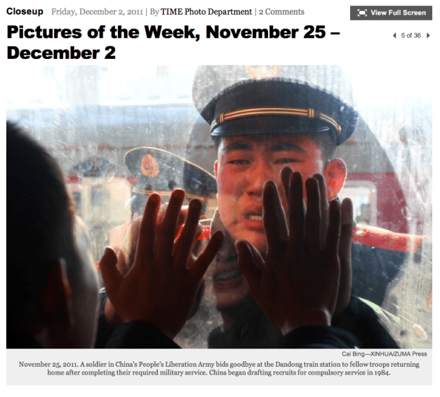 Time’s Pictures of the Week Posted by ZUMAPRESS.com on December 4, 2011 Posted in: ZUMALAND. Leave a comment © Cai Bing/XINHUA/ZUMAPRESS.com Share this: Share on Facebook (Opens in new window) Facebook Share on LinkedIn (Opens in new window) LinkedIn Share on X (Opens in new window) X Like Loading... Related Posts navigation ← Wall Street Journal Front Page News From The Sports Desk – Tiger Finally Wins →