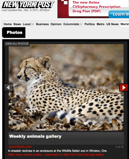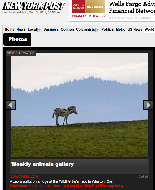 New York Post weekly animals gallery – Tearsheets Posted by ZUMAPRESS.com on December 5, 2011 Posted in: ZUMALAND. Leave a comment © Robin Loznak/ZUMAPRESS.com © Robin Loznak/ZUMAPRESS.com Share this: Share on Facebook (Opens in new window) Facebook Share on LinkedIn (Opens in new window) LinkedIn Share on X (Opens in new window) X Like Loading... Related Posts navigation ← ZUMA’s Brian Cahn: The Texas Observer Cover. THE KONA GALLERY BEST OF THE YEAR SHOW! →