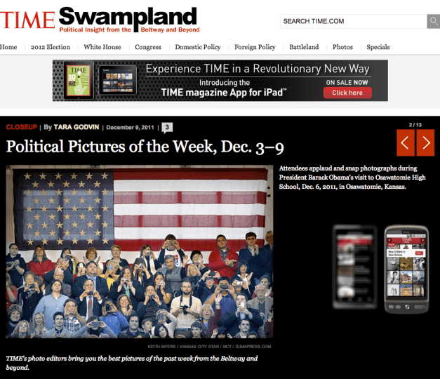 TIME.com ZUMA Tearsheet. Posted by ZUMAPRESS.com on December 10, 2011 Posted in: ZUMALAND. Leave a comment © Keith Myers/Kansas City Star/MCT/ZUMAPRESS.com Share this: Share on Facebook (Opens in new window) Facebook Share on LinkedIn (Opens in new window) LinkedIn Share on X (Opens in new window) X Like Loading... Related Posts navigation ← KONA GALLERY BIG HOLIDAY 2011 CELEBRATION! ZUMA’s Patrick Fallon TIME.com Tearsheet. →