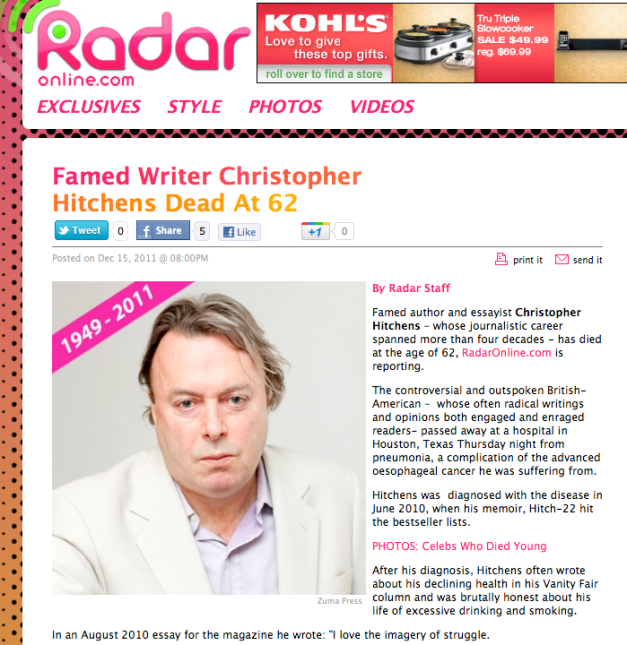 Radar Online Tearsheet. Posted by ZUMAPRESS.com on December 19, 2011 Posted in: ZUMALAND. Leave a comment © Beowulf Sheelan/ZUMAPRESS.com Share this: Share on Facebook (Opens in new window) Facebook Share on LinkedIn (Opens in new window) LinkedIn Share on X (Opens in new window) X Like Loading... Related Posts navigation ← BlogHer.com – Tearsheet. TIME.com, Tearsheet. →