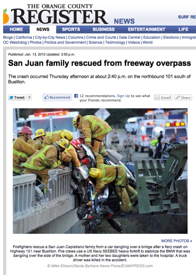 Orange County Register Tearsheet Posted by ZUMAPRESS.com on January 13, 2012 Posted in: ZUMALAND. Leave a comment Mike Eliason/Santa Barbara News-Press/ZUMAPRESS.com Share this: Share on Facebook (Opens in new window) Facebook Share on LinkedIn (Opens in new window) LinkedIn Share on X (Opens in new window) X Like Loading... Related Posts navigation ← Sean Penn and Photographers, a Love story… Mopeds in Vietnam →