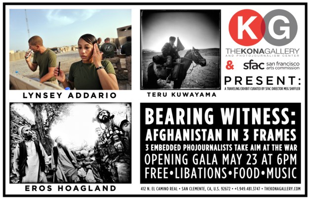 BEARING WITNESS – KONA Gallery Opening Gala Posted by ZUMAPRESS.com on April 30, 2012 Posted in: ZUMALAND. Leave a comment Save the date : May 23 at 6PM… And join us for the Opening of: “BEARING WITNESS – Afghanistan in 3 frames” At The KONA Gallery, 412 . El Camino Real – San Clemente CA U.S. 92672 For any information : scott@thekonagallery.com or 949.481.3747 Share this: Share on Facebook (Opens in new window) Facebook Share on LinkedIn (Opens in new window) LinkedIn Share on X (Opens in new window) X Like Loading... Related Posts navigation ← Nina Roman or Nina Rhodes-Hughes – Request MERKEL CLASSICS FROM BUSTIN’ DOWN THE DOOR →
