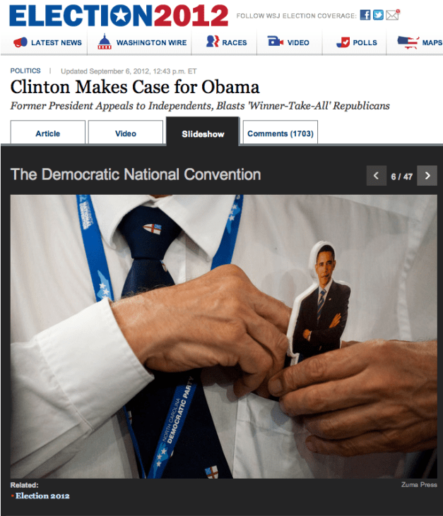 Sept. 5, 2012 – Charlotte, North Carolina, U.S. – North Carolina Delegate JAMES LONG wears a cut-out of President Obama in his shirt pocket at the Time Warner Cable Arena during the 2012 Democratic National Convention. (Credit Image: © Mary F. Calvert/ZUMAPRESS.com)