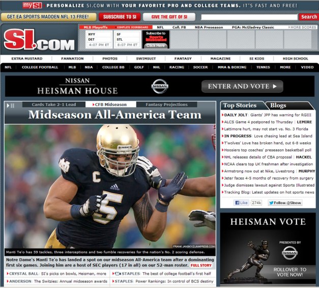 Sports Illustrated.com – Tearsheet Posted by ZUMAPRESS.com on October 18, 2012 Posted in: ZUMALAND. Leave a comment © Frank Jansky/ZUMAPRESS.com Share this: Share on Facebook (Opens in new window) Facebook Share on LinkedIn (Opens in new window) LinkedIn Share on X (Opens in new window) X Like Loading... Related Posts navigation ← PIHLA VIITALA – Urgent request “Man Controlling Trade” statue, Washington D.C →