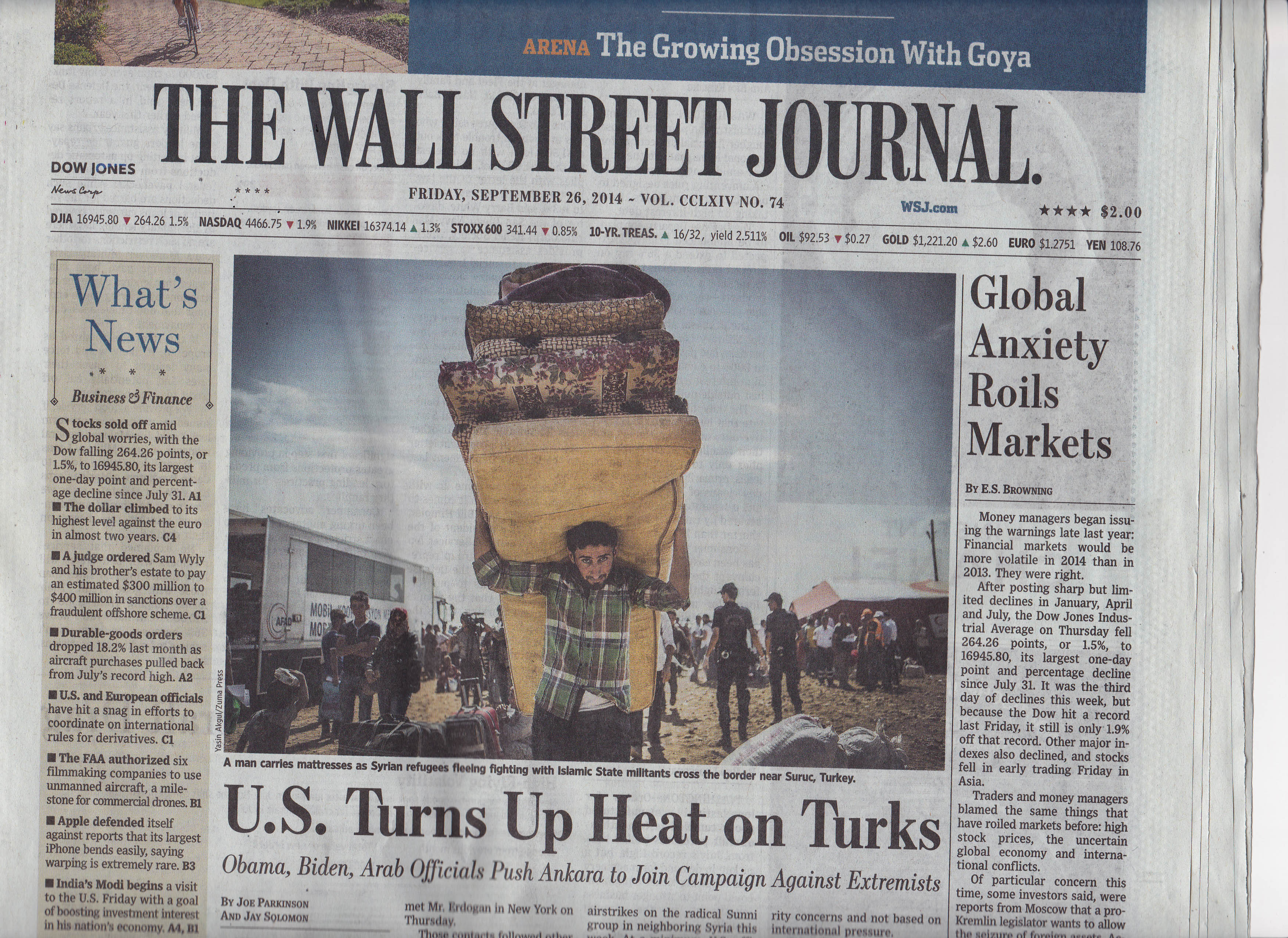 Yasin Akgul via ZUMA Wire Service, featured on the cover of The Wall Street Journal, September 26 Posted by ZUMAPRESS.com on September 29, 2014 Posted in: ZUMALAND. Leave a comment Share this: Share on Facebook (Opens in new window) Facebook Share on LinkedIn (Opens in new window) LinkedIn Share on X (Opens in new window) X Like Loading... Related Posts navigation ← Photographer Serguei Fomine, via ZUMA Wire Service, featured on TIME.com, Sept. 22 URGENT PICTURE REQUEST: →