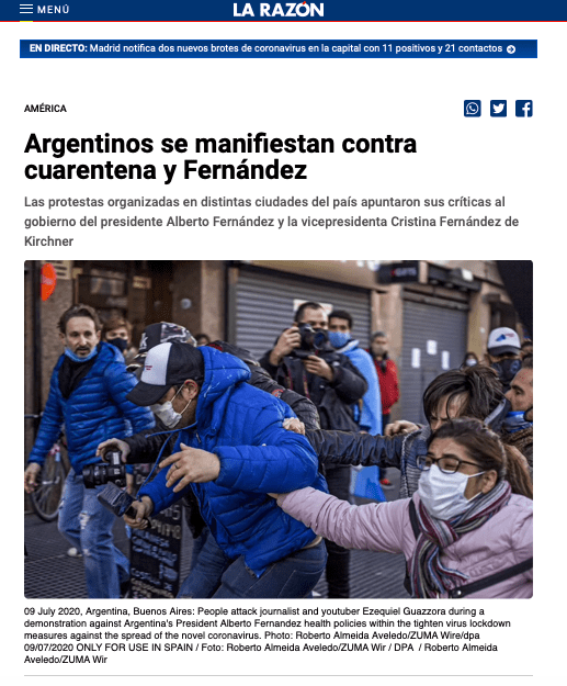 July 9, 2020, Buenos Aires, Federal Capital, Argentina: Protesters at a demonstration against the quarantine attack journalist and youtuber EZEQUIEL GUAZZORA during a protest of the lockdown during the coronavirus pandemic.