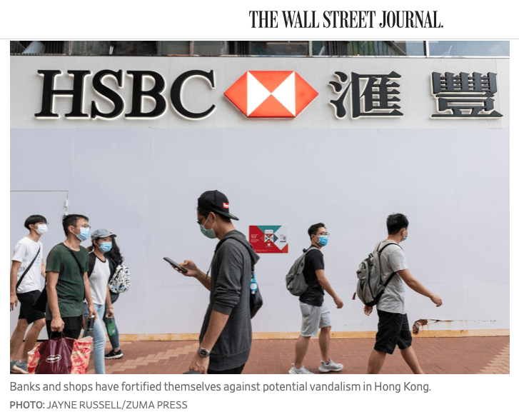 July 1, 2020, Hong Kong, Hong Kong, China: Various banks and shops fortified to protect against vandalism for their links to China. HSBC Causeway Bay has the bank and all access to ATM’s concealed. Hong Kong Special Administrative Region Establishment Day. Twenty-three years after Hong Kong was handed by Britain back to Chinese rule, Beijing is pushing to implement tough new national security laws that will suppress the pro-democracy protests seen in the city. It will shatter the Sino-British Joint Declaration where China agreed to the One country, Two systems government. The banning of traditional marches for the first time, has infuriated the public.