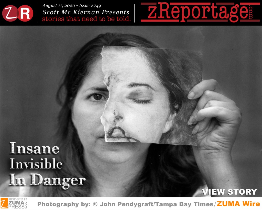 zReportage.com Story Summary: zReportage.com Story of the Week #749: TUESDAY August 11, 2020: INSANE INVISIBLE IN DANGER, by ZUMA Press Newspaper The Tampa Bay Times photographer John Pendygraft and reporters Leonora LaPeter Anton, Anthony Cormier and Michael Braga, who together spent more than a year investigating and documenting Florida’s state-run mental hospitals, exposing institutions shrouded in secrecy. Using those records, the reporters created the first comprehensive database of injuries and violent episodes at Florida’s mental hospitals. Florida’s state-funded mental hospitals are supposed to be safe places to care for people who are a danger to themselves or others. But years of neglect and 00 million in budget cuts have turned them into treacherous warehouses where violence is out of control and patients can’t get the care they need. Since 2009, violent attacks at the state’s six largest hospitals have doubled. Nearly 1,000 patients ordered to the hospitals for close supervision managed to injure themselves or someone else. This story won a Pulitzer prize for investigative reporting. Welcome to: INSANE INVISIBLE IN DANGER