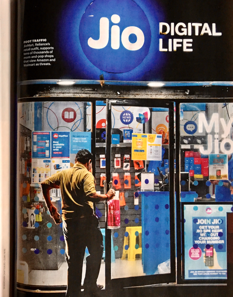 July 29, 2019, Kolkata, West Bengal, India: A person entering a reliance Jio store. Reliance Jio became the largest telecom provider in India at the end of Q2. It surpassed Vodafone-Idea with over 331 miilion subscriber at the end of Q2 to formers 320 million subscriber. The quarterly figure was released individually by both telecom giants.