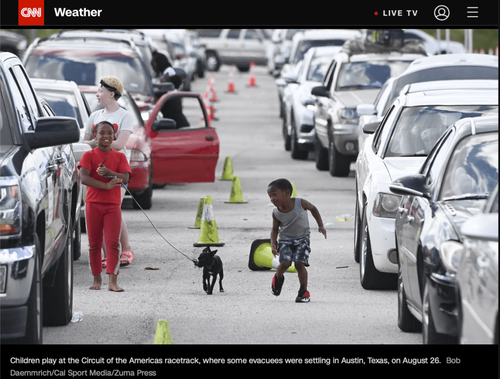 August 26, 2020, Austin, Texas, USA: Children play as Austin officials help east Texans and west Louisiana residents get settled at the Circuit of the Americas race track after evacuating low-lying areas about to get hit by Hurricane Laura on the Gulf Coast. Laura is expected to make landfall overnight as a Category 4 storm and wreak havoc along the Texas coast and inland.
