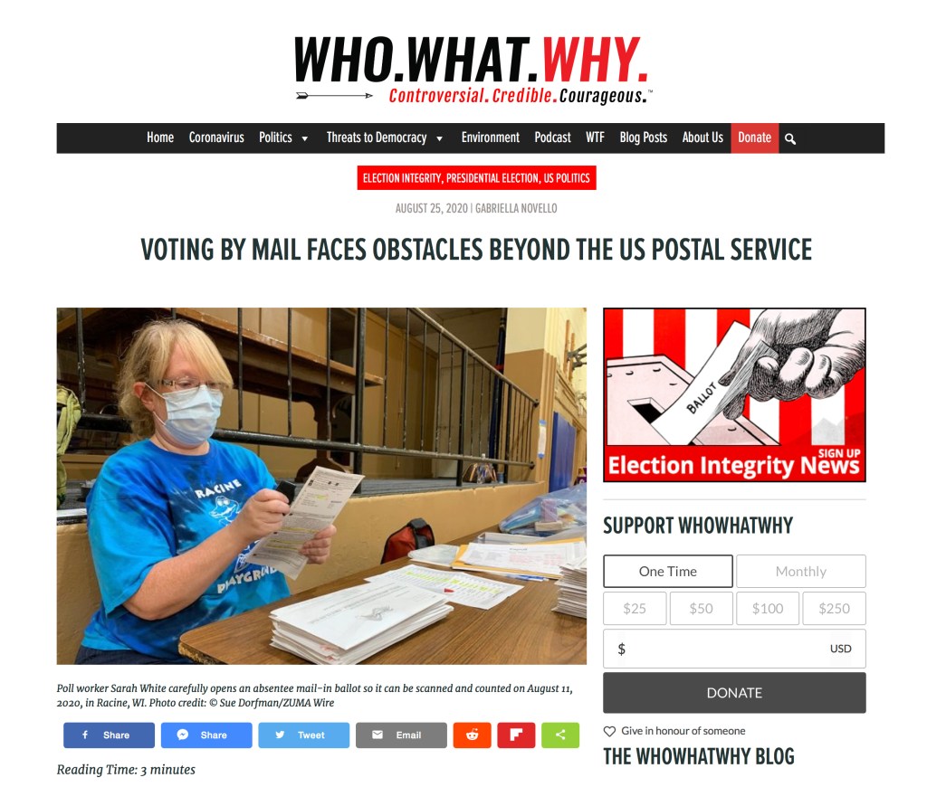 ZUMA’s Sue Dorfman Featured on WhoWhatWhy.org August 25th, 2020 Posted by ZUMAPRESS.com on September 2, 2020 Posted in: ZUMALAND. Leave a comment August 11, 2020, Racine, Wisconsin, USA: Poll worker Sarah White carefully opens an absentee mail-in ballot so it can be scanned and counted. Scott Mc Kiernan, Founder & Editor-in-Chief, ZUMA Press Share this: Share on Facebook (Opens in new window) Facebook Share on LinkedIn (Opens in new window) LinkedIn Share on X (Opens in new window) X Like Loading... Related Posts navigation ← ZUMA’s Bob Daemmrich Featured on WhoWhatWhy.org August 31st, 2020 Graceland Vandalized with Black Lives Matter Video credit © Karen Focht →