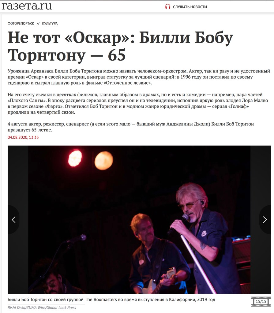 ZUMA’s Rishi Deka Featured on Gazeta.ru April 8th, 2020 Posted by ZUMAPRESS.com on September 4, 2020 Posted in: ZUMALAND. Leave a comment August 11, 2019: Billy Bob Thornton & The Boxmasters perform at the Belly Up Tavern Scott Mc Kiernan, Founder & Editor-in-Chief, ZUMA Press Share this: Share on Facebook (Opens in new window) Facebook Share on LinkedIn (Opens in new window) LinkedIn Share on X (Opens in new window) X Like Loading... Related Posts navigation ← ZUMA’s Juan Carlos Hernandez featured on EuropaPress.es September 2nd 2020 Biden Visits Kenosha Video Credit © Amy Katz →