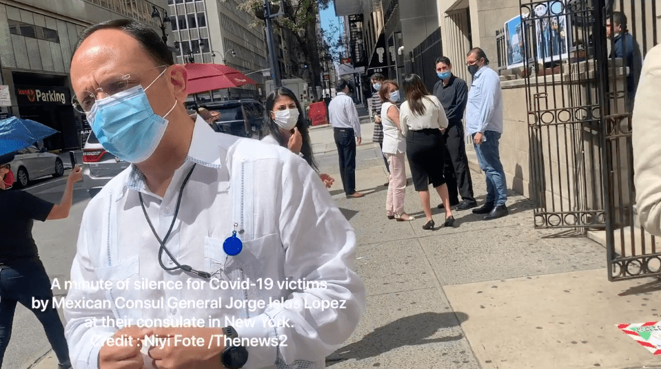 September 3, 2020, New York, USA: The Consul general of Mexico in New York, Jorge Islas Lopez holds a minute of silence for Covid-19 patients in front of Mexican consulate. This one minute of silence started on August 17 and will go until September 11th.