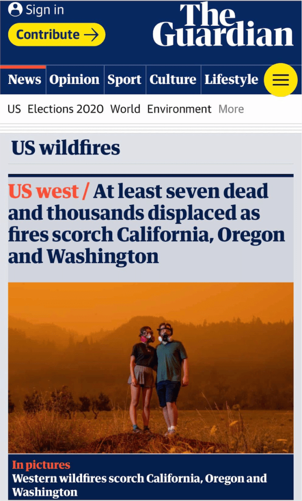 September 8, 2020, Elkton, OREGON, U.S.A: Wearing the respirator masks they have used during the COVID-19 pandemic, MAIREAD MILAN and her boy friend ALEX LOZNAK pause for a portrait while heavy smoke from nearby wildfires shrouds the countryside near Elkton in rural western Oregon. The Oregon Department of Environmental Quality has issued an Air Pollution Advisory for the area in effect until further notice.