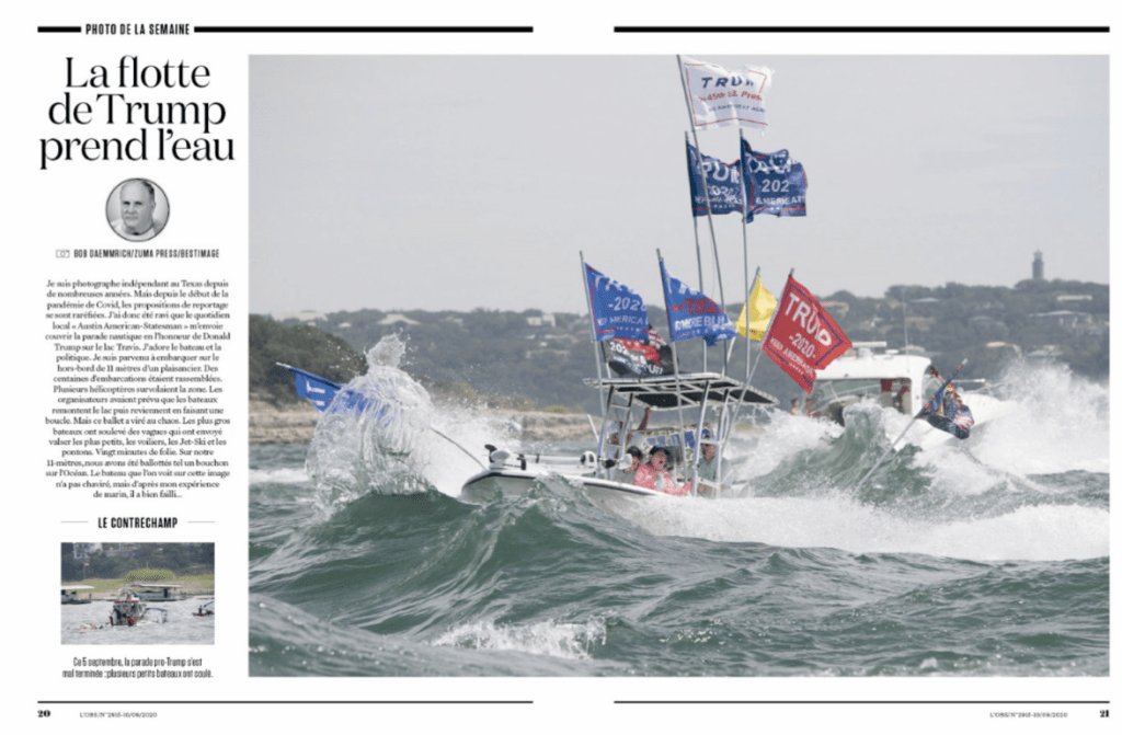 September 5, 2020, Lakeway, Texas, USA: Boats flying flags honoring Republican candidate for President Trump crowd Lake Travis during a boat parade Saturday that attracted hundreds of watercraft of all sizes. Several boats capsized in the huge wakes from hundreds of boats.