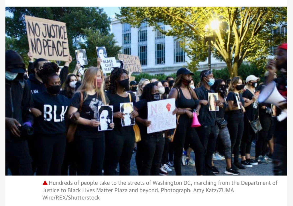 September 23, 2020, Washington Dc, Washington DC, USA: Hundreds of people take to the streets of Washington DC, marching from the Dept. of Justice to Black Lives Matter Plaza and beyond to protest the announcement that the Policemen who shot and killed Taylor were found not guilty by the Kentucky Grand Jury. Protestors from around the country gave passionate speech explaining systematic racism.