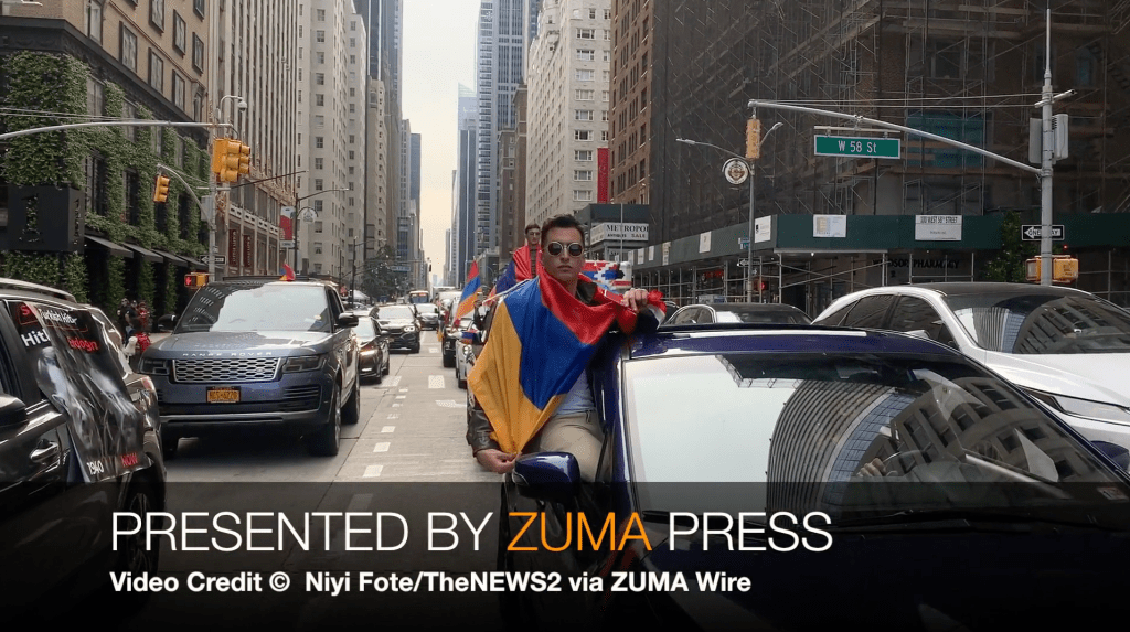 October 10, 2020, New York, USA: American-Armenians protest Azerbaijan’s military aggression in Artsakh, Nagorno-Karabakh,with Turkey’s support, attacking the Artsakh Republic formerly Mountainous Karabakh and the Republic of Armenia that started on Sunday, September 27, 2020. Those actions have led to war between the two former Russian Soviet republics.