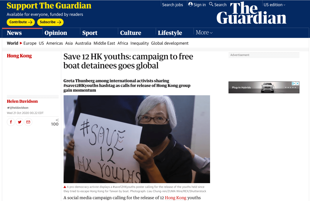 October 17, 2020, Hong Kong, CHINA: Alexandra Wong ( 64 ) a Hong Kong citizen and the active pro-democracy political activist displaying a banner expressing her support for 12 HONG KONGERS HELD CAPTIVE by Chinese Police Authority on Chinese Mainland. Wong held press conference this morning with the assistance of pro-democracy lawmakers confessing her horrible experience of 14 months of imprisonment on Chinese Mainland for ‘violating’ NATIONAL SECURTIY LAW.