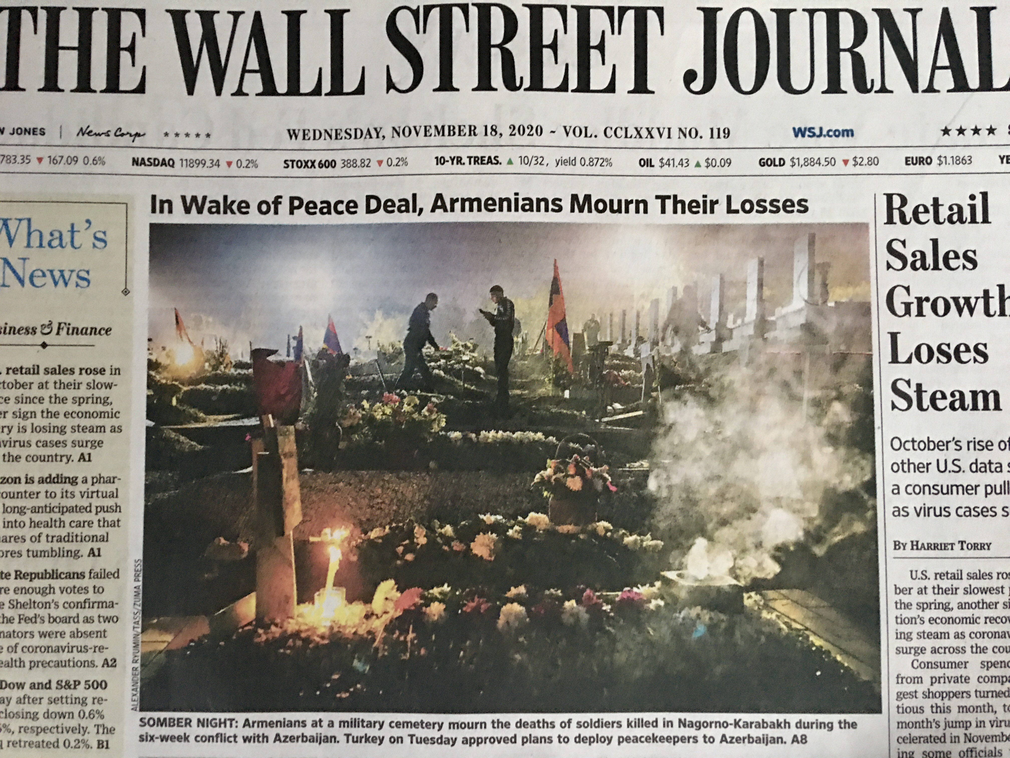ZUMA’s Alexander Ryumin Featured on cover of Wall Street Journal November 18th, 2020 Posted by ZUMAPRESS.com on November 18, 2020 Posted in: ZUMALAND. Leave a comment YEREVAN, ARMENIA – NOVEMBER 17, 2020: Graves of servicemen killed during battles in Nagorno-Karabakh, at the Yerablur military cemetery. Scott Mc Kiernan, Founder & Editor-in-Chief, ZUMA Press Share this: Share on Facebook (Opens in new window) Facebook Share on LinkedIn (Opens in new window) LinkedIn Share on X (Opens in new window) X Like Loading... Related Posts navigation ← ZUMA’s Juan Carlos Hernandez featured on MSN.com/es November 12th, 2020 Proud Boys And Trump Supporters Protest in California Capitol Video credit © John Goodman/ZUMA Press →