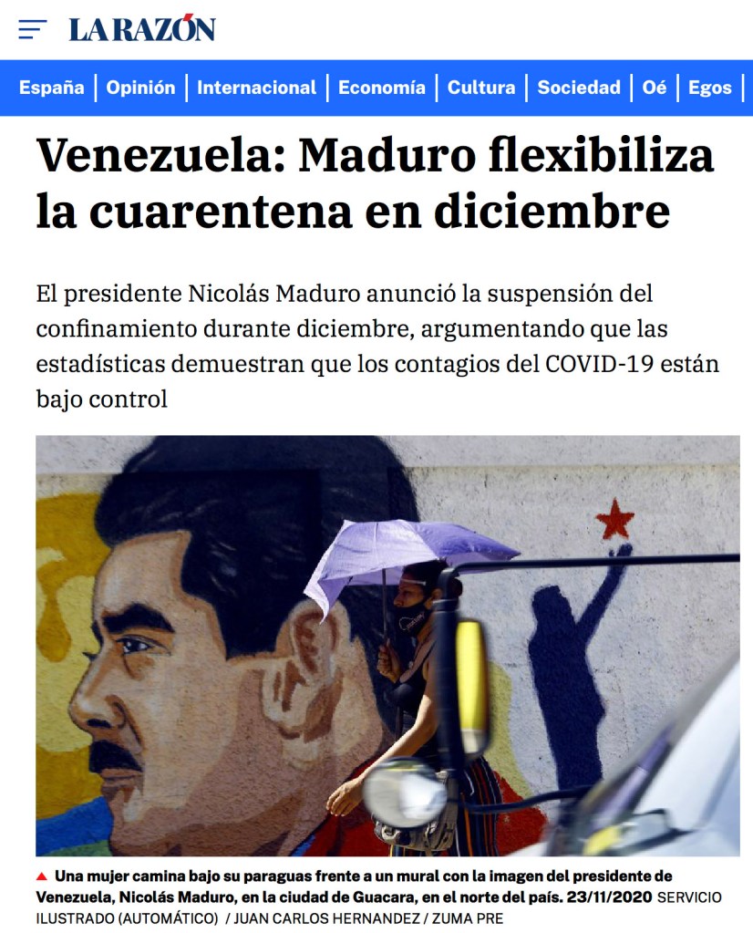 ZUMA’s Juan Carlos Hernandez Featured on La Razon.es November 23, 2020 Posted by ZUMAPRESS.com on November 24, 2020 Posted in: ZUMALAND. Leave a comment VENEZUELA DAILY LIFENovember 13, 2020, Guacara, Carabobo, Venezuela: A woman with umbrella walks in front of graffiti of Nicolas Maduro. Scott Mc Kiernan, Founder & Editor-in-Chief, ZUMA Press Share this: Click to share on Facebook (Opens in new window) Facebook Click to share on LinkedIn (Opens in new window) LinkedIn Click to share on X (Opens in new window) X Like Loading... Related Posts navigation ← ZUMA’s Shou Yi Ceng Recievs Honorable Mention for NDAward 2020 ZUMA’s David Barak Featured on TheGuardian.com November 24th, 2020 →