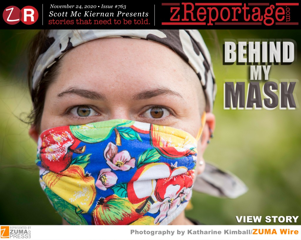 Scott Mc Kiernan Presents zReportage.com Story of the Week #763: Launched TUESDAY November 24, 2020: ‘Behind MY Mask’ from ZUMA Press award winning photojournalist KATHARINE KIMBALL, who interviewed, Oregonians about mask wearing during COVID-19. Health officials say it would change American lives for the better, if it became a cultural norm in the U.S. for people to wear masks when they’re under the weather or in crowded areas. In Japan or South Korea, locals might get dirty looks if they hop on a subway with a sniffle and no mask. Thru out America rallies protesting masks, as a violation of their personal freedom. Meanwhile for others it is the new normal, as they have gotten used to wearing them in public. Like the seat belt a generation ago. Public health experts believe that American culture could fundamentally shift to embrace this new hygiene practices. What do the you think? Welcome to: ‘Behind MY Mask’
