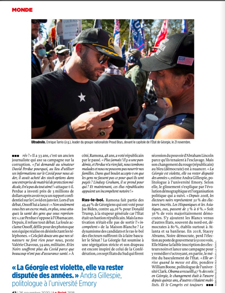 November 21, 2020, Atlanta, GA: Hundreds of Georgia Republicans gather outside Capitol in Atlanta at rally to show support for President Trump. Proud Boys leader Enrique Tarrio talks with supporter with NRA cap.
