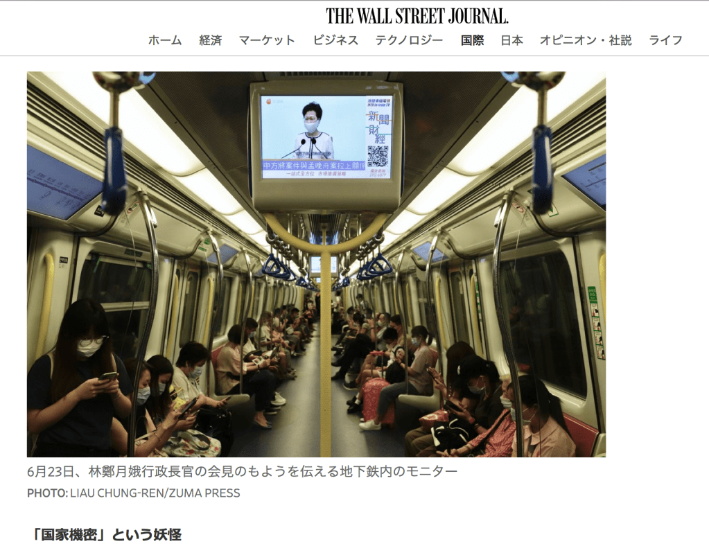 June 23, 2020, Hong Kong, CHINA: Recorded video image of HKSAR Chief Executive Carrie Lam explaining ‘benefits’ of implementation of HK SECURITY LAW to the media is shown on a TV screen inside an MTR train.