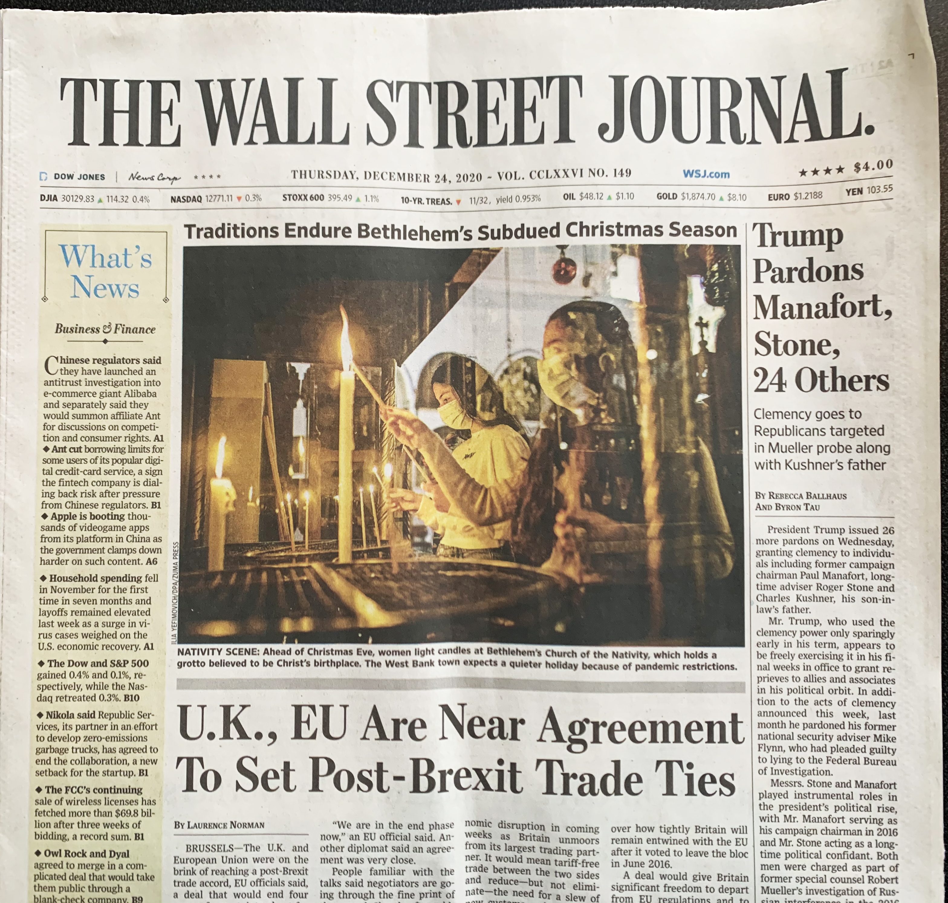 23 December 2020, Palestinian Territories, Bethlehem: People light candles inside the Church of Nativity, believed to be the birthplace of Jesus Christ, ahead of the Christmas eve in the West bank city of Bethlehem.