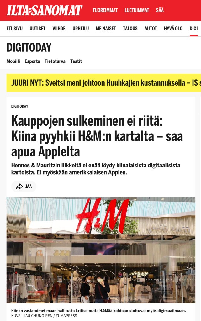 March 26, 2021, HONG KONG, CHINA: Swedish apparel retail giant, H & M shop at the heart of shopping district in Hong Kong. PRC is taking a retaliatory measure to boycott prominent Western Brand goods and companies in response to the Western Brands’ refusal of using imported cotton materials of Uyghur origins