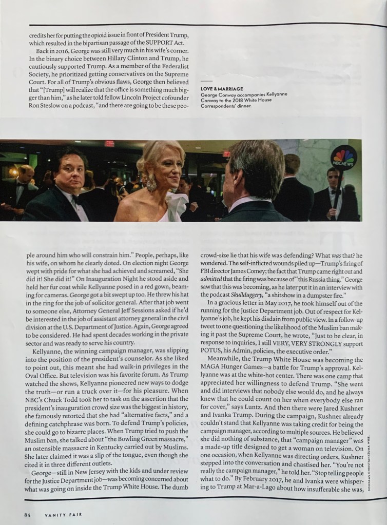 April 28, 2018 – Washington, District of Columbia, United States – GEORGE CONWAY III accompanies his wife, Counseler to the President, KELLYANNE CONWAY, as she schmoozes with a guest at the 2018 White House Correspondents Dinner.
