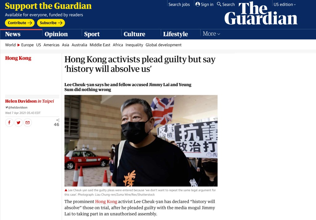 April 1, 2021, HONG KONG, CHINA: Union Jack flies behind Lee Cheuk-yan ( 63 ) a former lawmaker and leader of HK ALLIANCE, leaves West Kowloon Magistracy after being released on bail. Lee, along with other 6 HK democrats including media tycoon and founder of APPLE DAILY, Jimmy Lai are convicted of organizing and participating in an ‘ unauthorized ‘ anti-government protest in 2019.