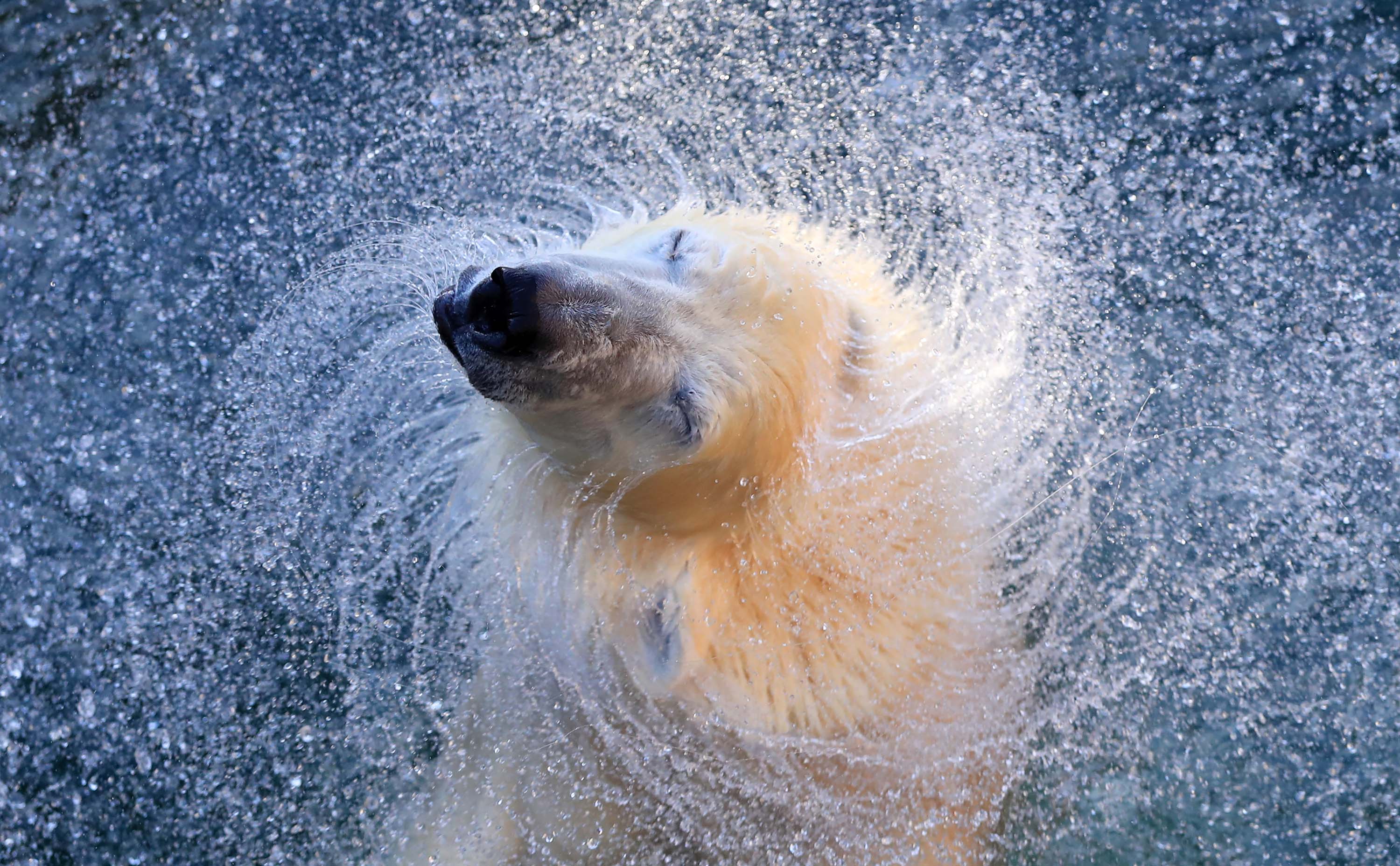 SHAKE, RATTLE and ROLL: February 27, 2020, St. Petersburg, Leningrad Oblast, Russia: HAARCHAANA, a young female white Polar bear shakes off water at Leningrad Zoo. She is celebrating 2020 International Polar Bear Day. (Credit Image: © Peter Kovalev/TASS via ZUMA Press)
