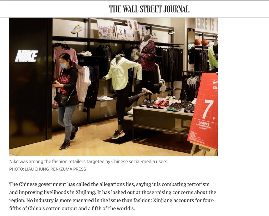 March 26, 2021, HONG KONG, CHINA: Female customer walking out of NIKE Shop inside shopping arcade in Hong Kong. Chinese Communist is taking a retaliatory measure to boycott famous Western brand goods in response to the Western end-users refusal of using cotton raw materials of Uyghur origins.
