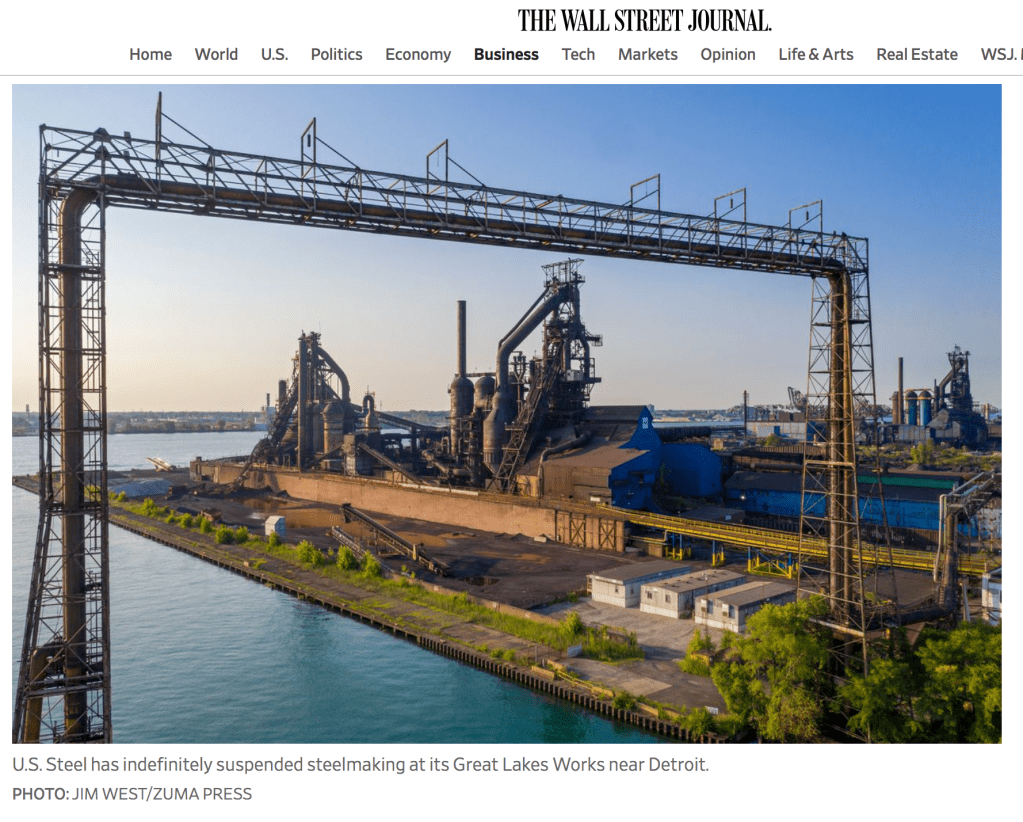 August 9, 2020, River Rouge, Michigan, USA: The United States Steel mill on Zug Island, part of the company’s Great Lakes Works which is being closed. At one time the mill employed 16,000 workers.