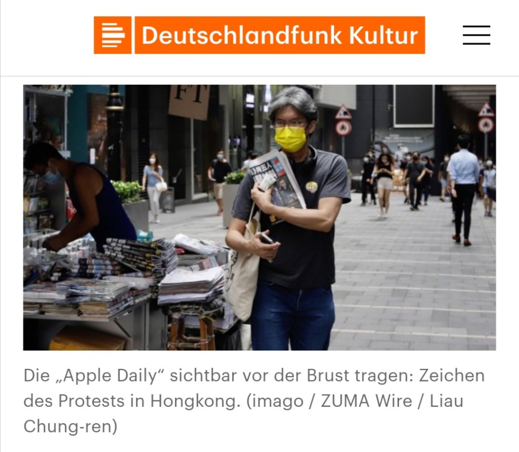 June 18, 2021, HONG KONG, CHINA: A man wearing Yellow Facemask ( Yellow, symbol colour of 2014 Umbrella Revolution ) leaving newspaper stand with copy of APPLE DAILY in his hand as gesture of support for the PAPER.