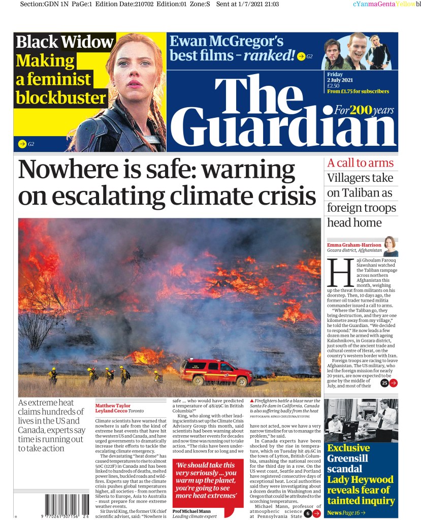 Checkout the colorful A-1 of the Guardian with this powerful moment captured June 15, 2021 in Irwindale, California of California’s brave firefighters, battling a brush fire burning out of control at Santa Fe Dam Recreation Area.
