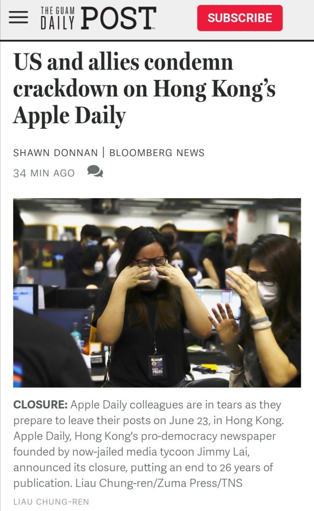 June 23, 2021, Hong Kong, China: Emotional female colleagues burst into tears as they prepare to leave their post at Apple Daily Editorial Office for the last time at midnight. Apple Daily, a Hong Kong’s pro-democracy Chinese Newspaper founded by media tycoon Jimmy Lai (now in jail) announced it’s closure putting an end to 26 years of service as a Voice of the People.
