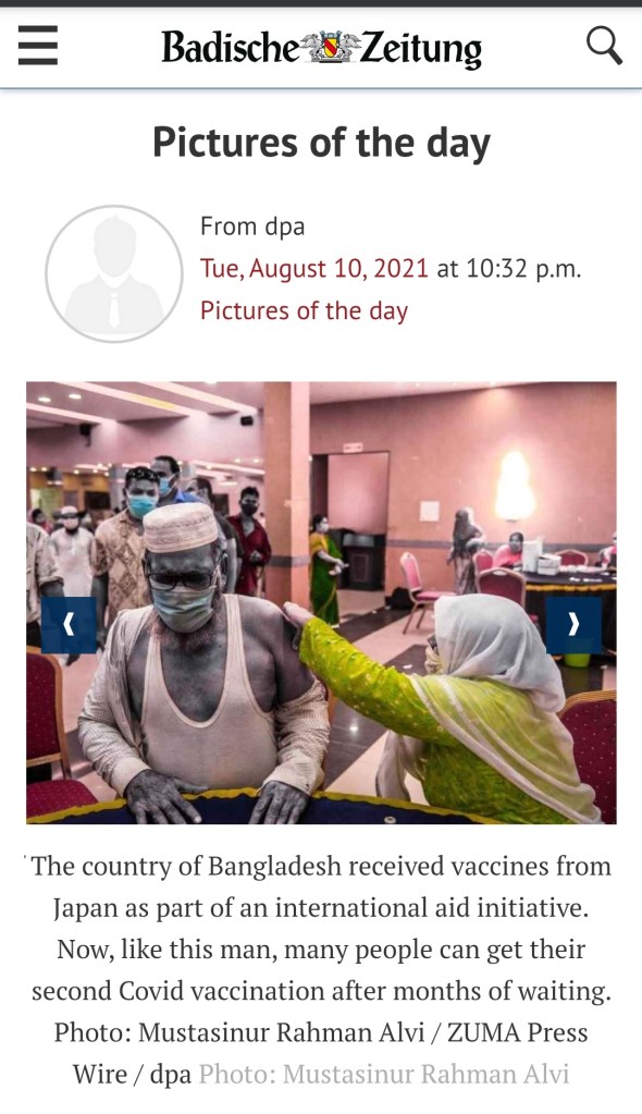 ZUMA’s Mustasinur Rahman Alvi featured in German Publication “Badische Zeitung”. Posted by ZUMAPRESS.com on August 23, 2021 Posted in: ZUMALAND. Leave a comment Scott Mc Kiernan, Founder & Editor-in-Chief, ZUMA Press Share this: Share on Facebook (Opens in new window) Facebook Share on LinkedIn (Opens in new window) LinkedIn Share on X (Opens in new window) X Like Loading... Related Posts navigation ← ZUMA’s Mustasinur Rahman Alvi featured in German Publication “Schwarzwälder Bote”. ZUMA’s Mustasinur Rahman Alvi featured in The Telegraph. →