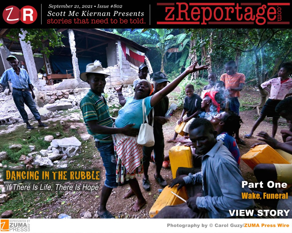 Scott Mc Kiernan Presents zReportage.com Story of the Week #802: TUESDAY September 21, 2021:’DANCING IN THE RUBBLE: ‘IF THERE IS LIFE, THERE IS HOPE’ Part 1 “Wake, Funeral” by all time photography Pulitzer Prize Winner: ZUMA Press Wire’s Star Photojournalist and Story Teller, CAROL GUZY.