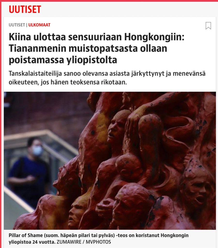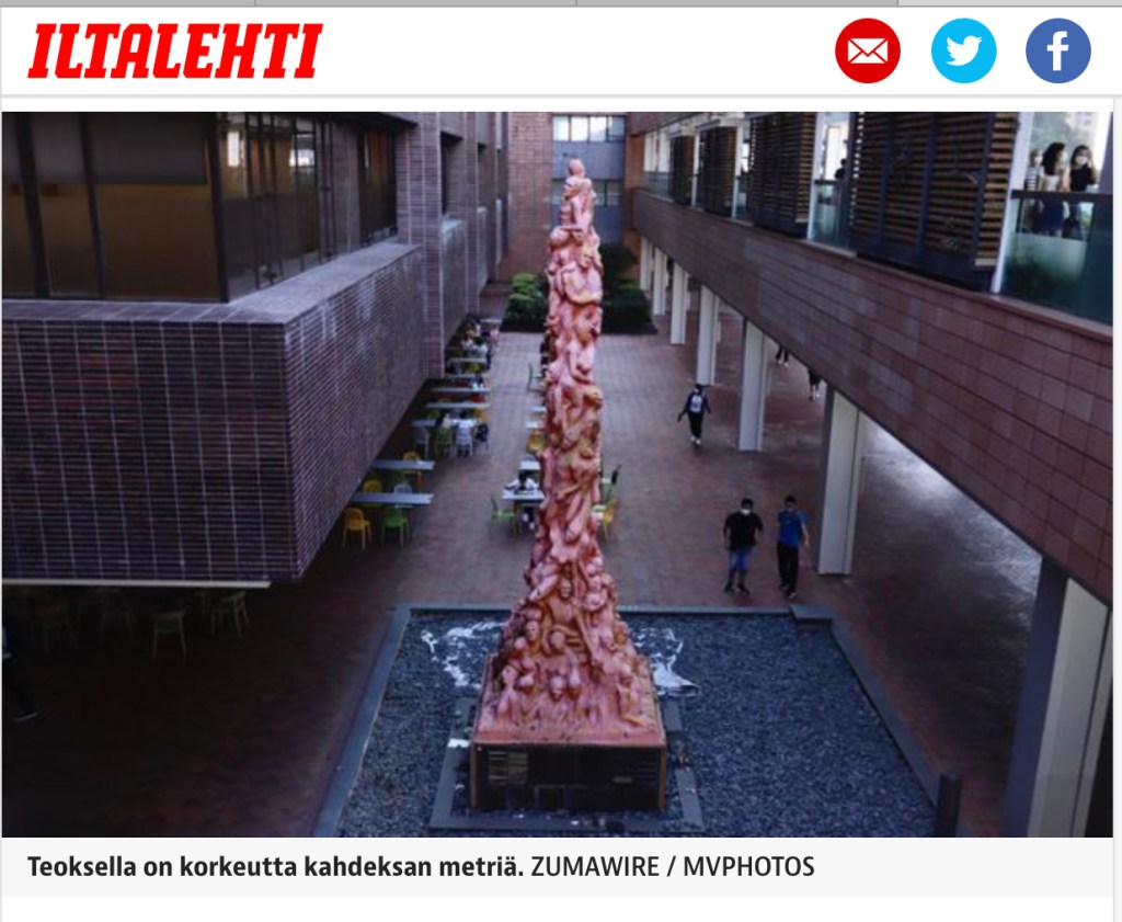 October 5, 2021, HONG KONG, CHINA: PILLAR OF SHAME, 8 meter tall sculpture work by Danish artist Jens Galschiot to commemorate 1989 JUNE 4th Massacre in Beijing inside Hong Kong University campus. HK University is predicted to remove Pillar of Shame at any time in near future as political pressure to remove the controversial art work is building, fueled by pro-Beijing Hong Kong officials.