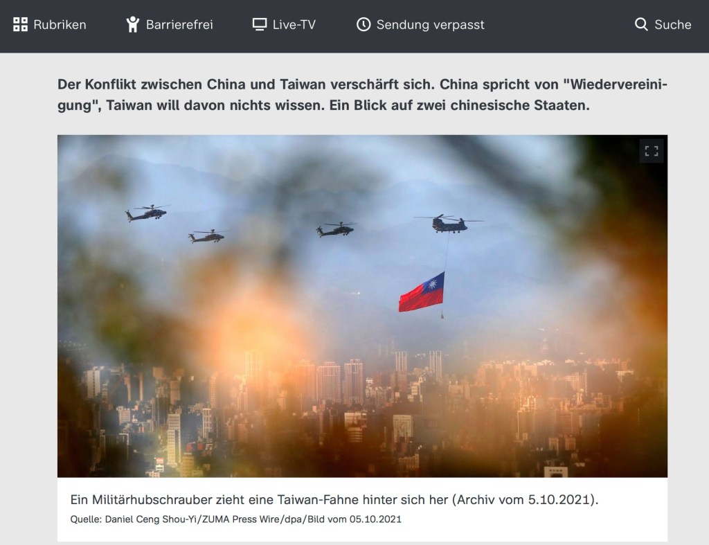 October 5, 2021, New Taipei, Taipei, Taiwan: A military helicopter carrying a tremendous Taiwan flag conducts a flyby rehearsal with other helicopters ahead of the Double-tenth national day celebration, near Taipei 101, amid China’s growing military threats. China has been sending record number of warplanes to the ADIZ of the self ruled island, whilst Taiwan has been building better relations with the US, Australia, Japan, and other European countries.