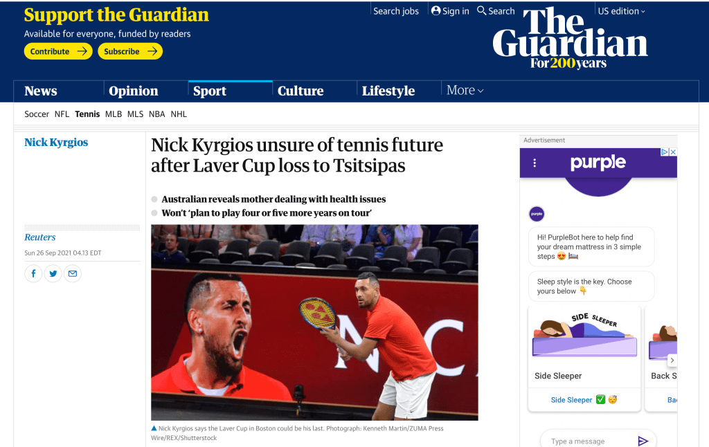 ZUMA’s Kenneth Martin featured on The Guardian.com Posted by ZUMAPRESS.com on October 15, 2021 Posted in: ZUMALAND. Leave a comment September 25, 2021, Boston, Massachusetts, USA: NICK KYRGIOS, of Team World, in action in the doubles match during Day 2 of the Laver Cup. Scott Mc Kiernan, Founder & Editor-in-Chief, ZUMA Press Share this: Share on Facebook (Opens in new window) Facebook Share on LinkedIn (Opens in new window) LinkedIn Share on X (Opens in new window) X Like Loading... Related Posts navigation ← Sit back and enjoy POM! “The Pictures of the Month” presented by Scott Mc Kiernan and ZUMA Press. ZUMA received a huge volume of over one million professional photographer’s images, all shot in the month of September. The ZUMA photographers covered the four corners of the world to bring pictures that need to be seen! POM shows the best work of these photojournalists, documenting the most important events of the past month. ‘Acid attacks need to be stopped. Inhumane and barbaric! ZUMA Press photographer Farzana Akhtar has photographed with grace and clarity, a acid victim Nomita’s story. Hopefully shedding light on how to take an ultimate violation to an asset in helping others:)’ Scott Mc Kiernan, publisher of zReportage →