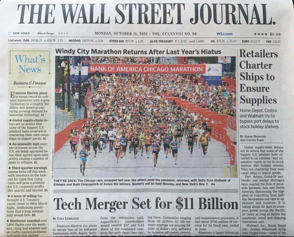 October 10, 2021, Chicago, Illinois, USA: The 43rd Bank of America Chicago Marathon kicks off as thousands of runners northbound on Columbus Drive on an usually warm day with highs expected to reach 82 degrees, Sunday October 10, 2021. An estimated 35,000 people participating in the 26.2 miles of flat even course which runs through out various neighborhoods from downtown to many surrounding communities in Chicago.