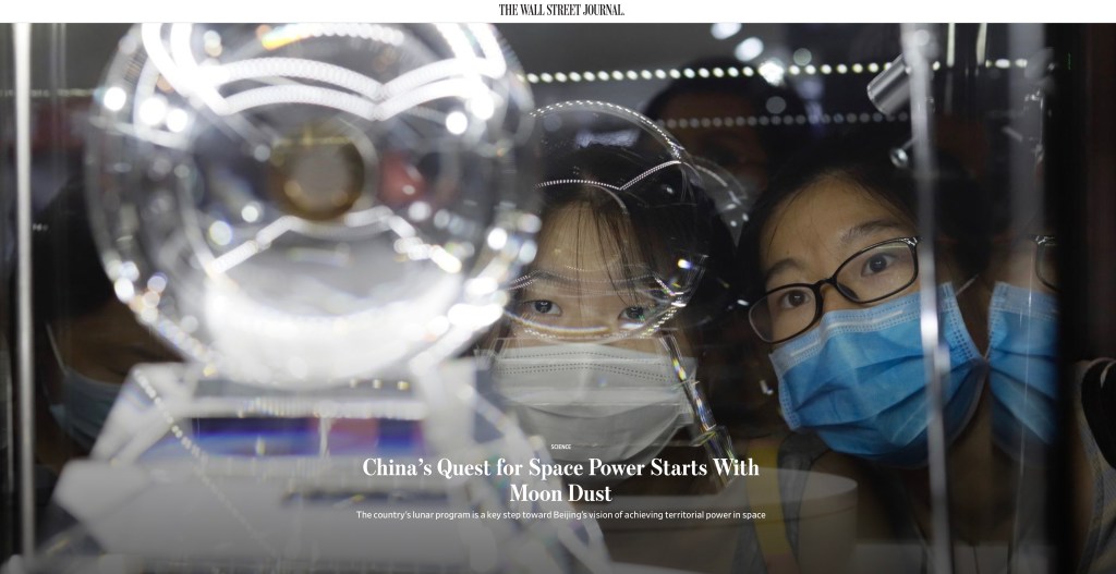 July 8, 2021, HONG KONG, CHINA: Citizens focusing their eyes intently on the Lunar sample display in the show case during CCP’s propaganda exhibition in Hong Kong boasting ‘ great achievements ‘ in the field of advanced science and technology under the rule of an authoritarian regime.
